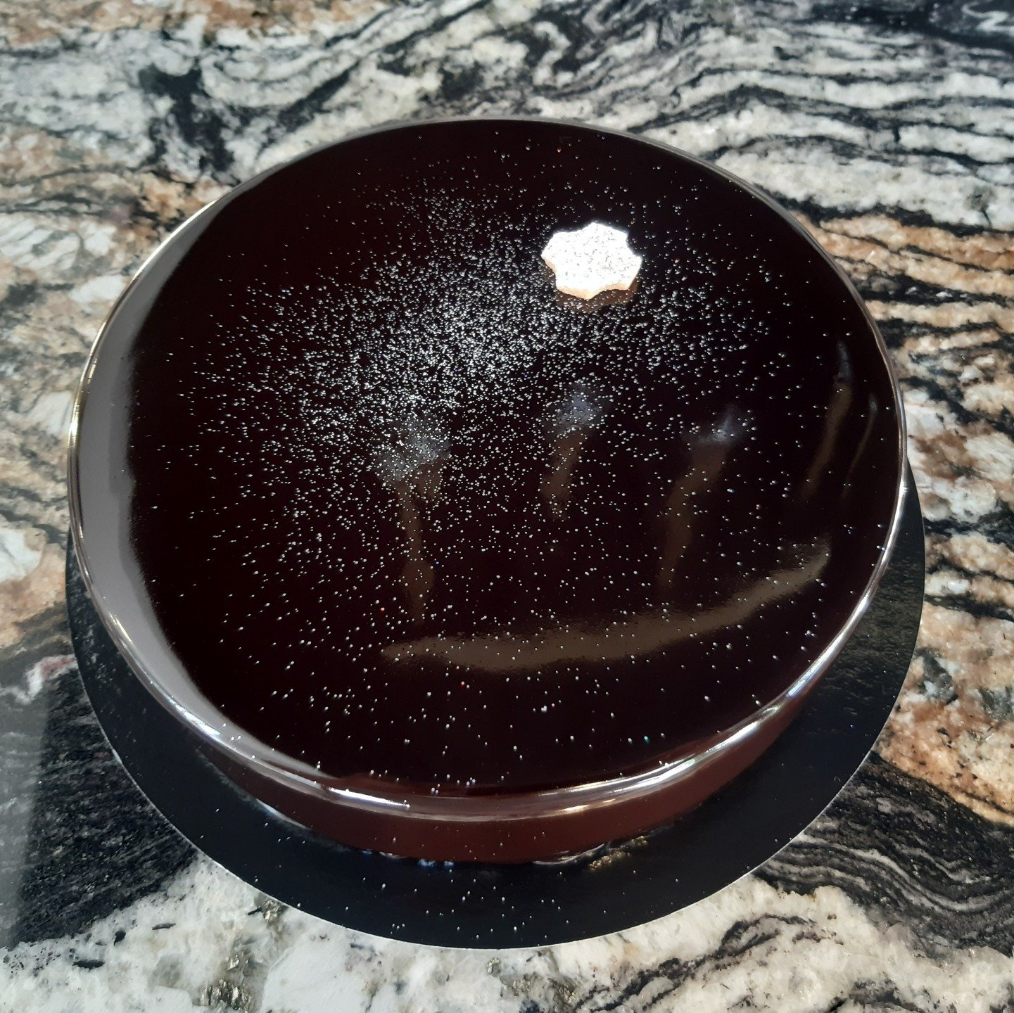 - glaçage miroir et paillettes
